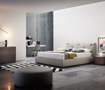 Polsterbetten oder funktionale Bettkästen, weiche Kopfteile, ergonomische Polsterungen, elegante Details und farbige Stoffe.